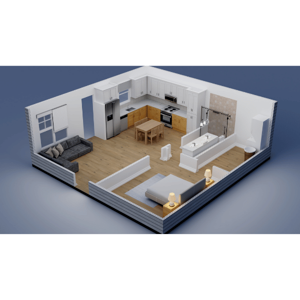 The ADU 625 is the premier choice for property owners looking to maximize rental versatility. By optimizing the 625-square-foot footprint, this plan offers an over-sized bedroom and an enhanced common area, making it ideal for couples. This layout focuses on creating a high-quality residential feel that attracts long-term, reliable tenants while significantly boosting your property value.